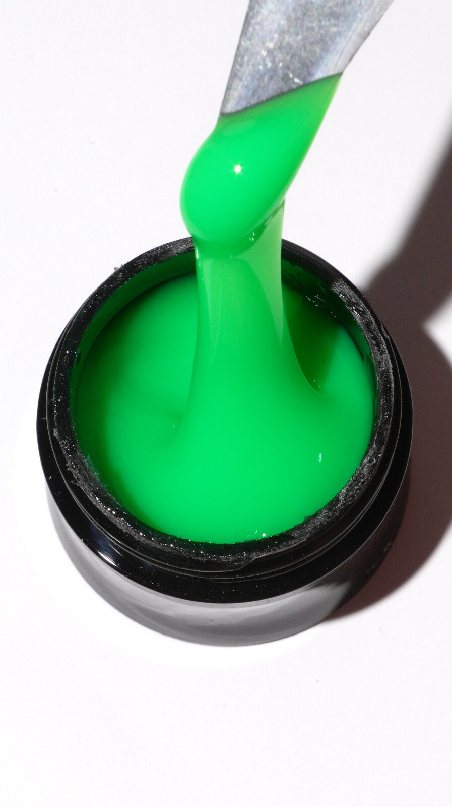 Яркий густой моделирующий гель неоново-зелёного цвета. Идеален для летнего дизайна, укрепления и моделирования ногтей. Отлично самовыравнивается, не растекается.