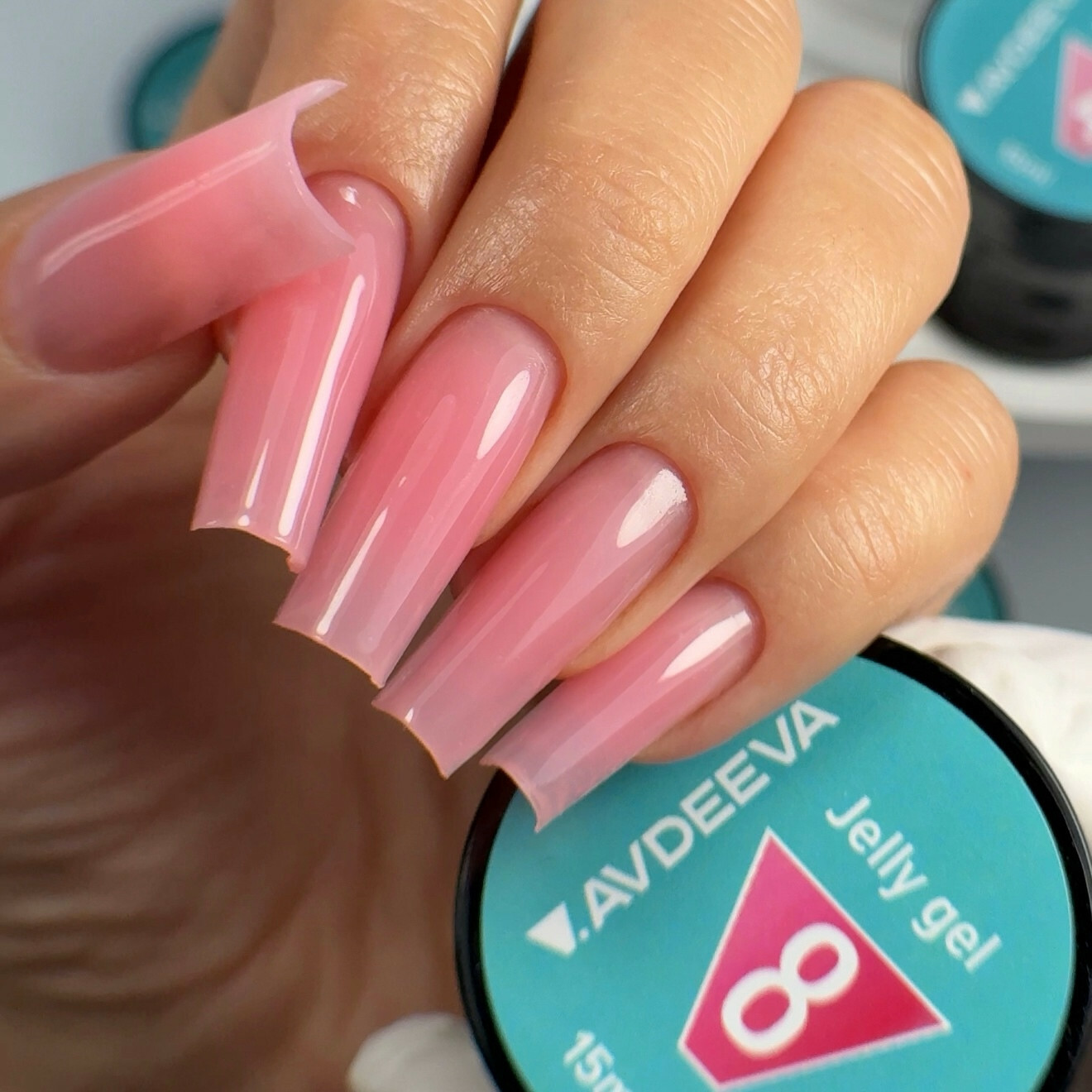 Jelly Gel Victoria Avdeeva №8 is a bright pink builder gel with a thick, jelly-like texture and intense pigmentation.