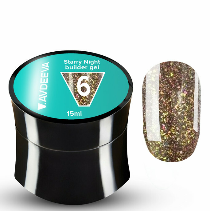 Modelliergel AVDEEVA Potal Builder Gel Nr. 02 – milchig mit goldenen Folienpartikeln, 15 ml