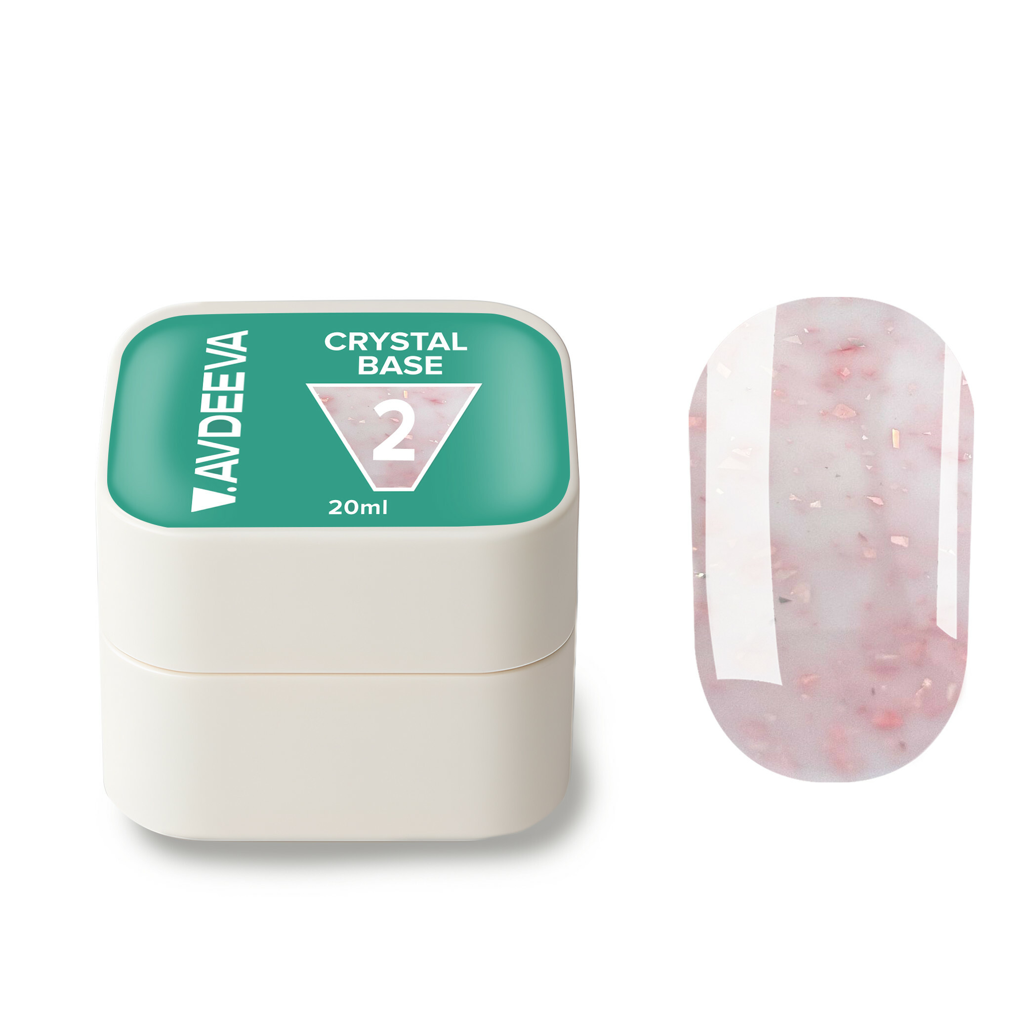 Crystal Base Nr. 2 von Victoria Avdeeva. Weiße Base mit rosafarbener Potalfolie für ein zartes und stilvolles Maniküre-Ergebnis. Inhalt: 20 ml.
