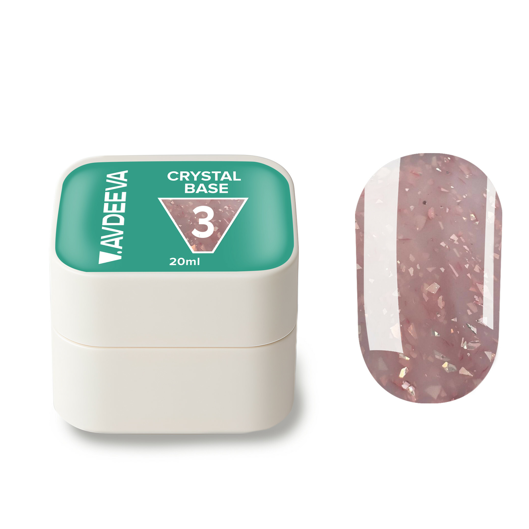 V.AVDEEVA Camouflage Base CRYSTAL BASE Nr. 3 – Milchig mit rosafarbener Potalfolie, 20 ml