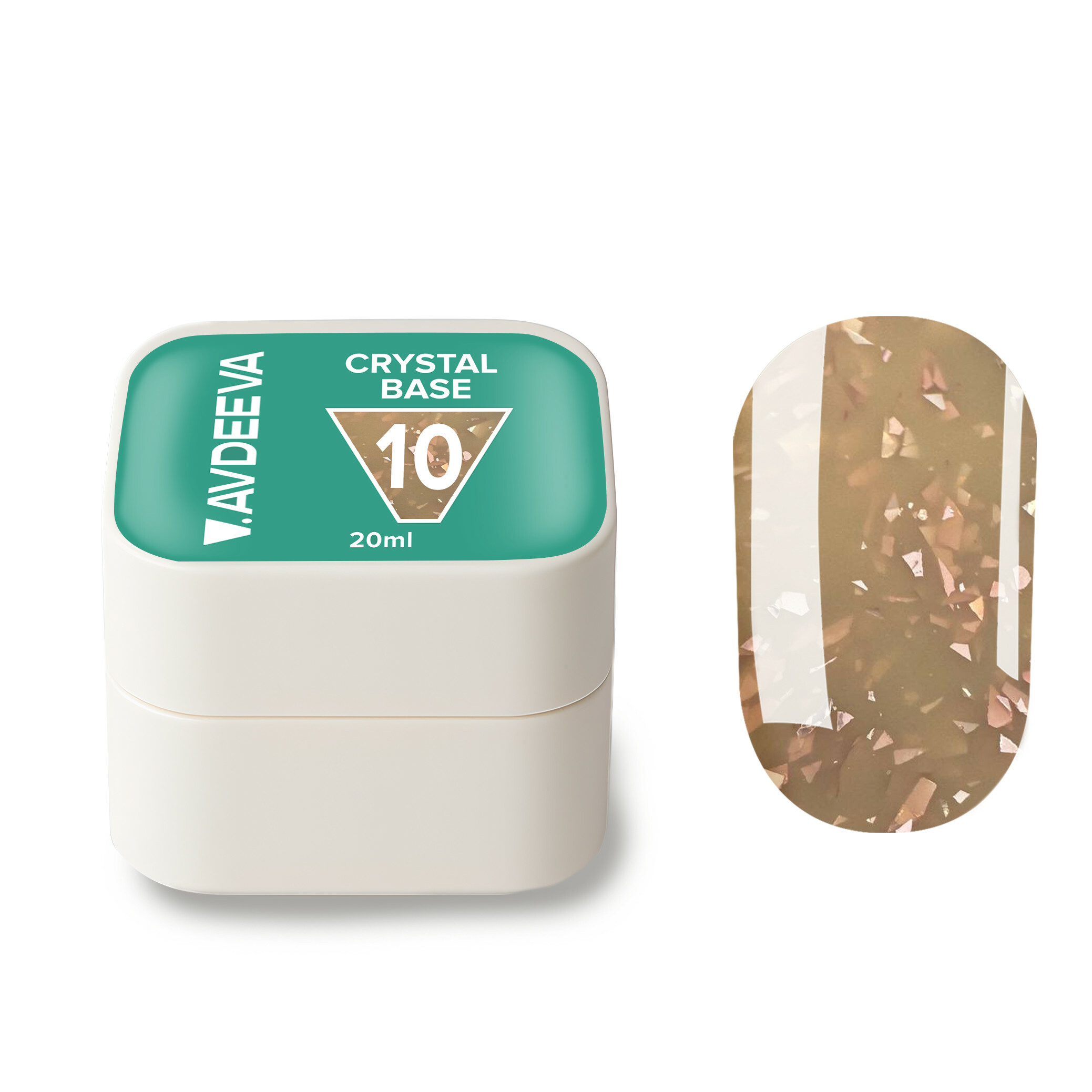 V.AVDEEVA Camouflage Base CRYSTAL BASE Nr. 10 – Kaffee-Milchfarben mit goldener Blattfolie, 20 ml