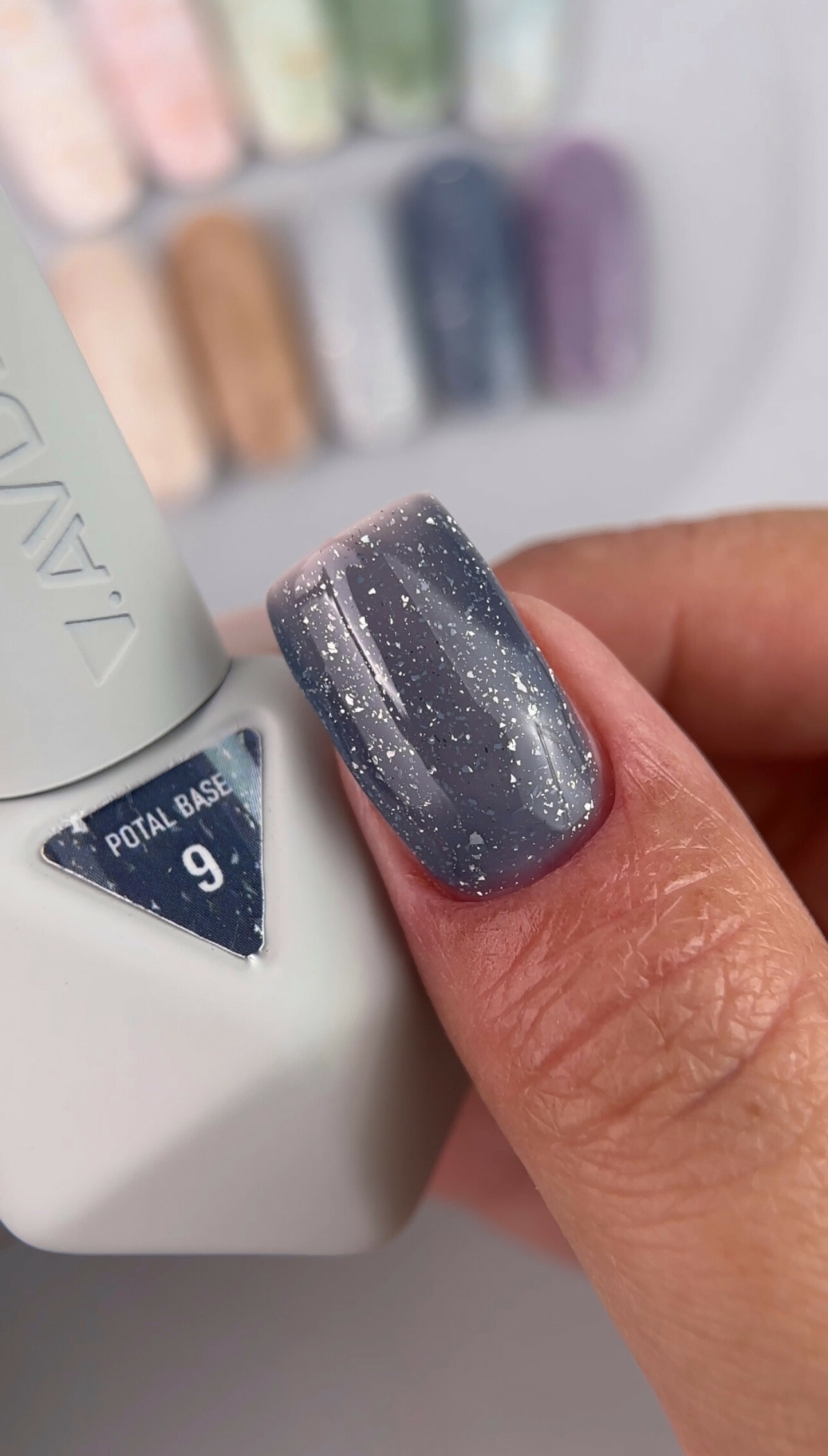 Victoria Avdeeva POTAL BASE 9 – Camouflage Base für Nägel in einem intensiven Dunkelblau mit schimmernden silbernen Partikeln.