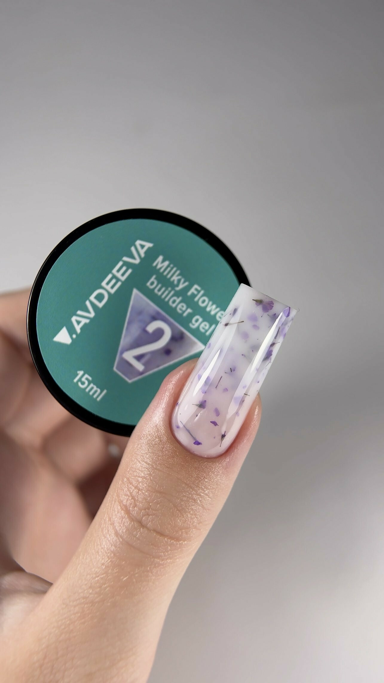 Milky Builder Gel AVDEEVA Milky Flower No.2 with Purple Dried Flowers, 15ml