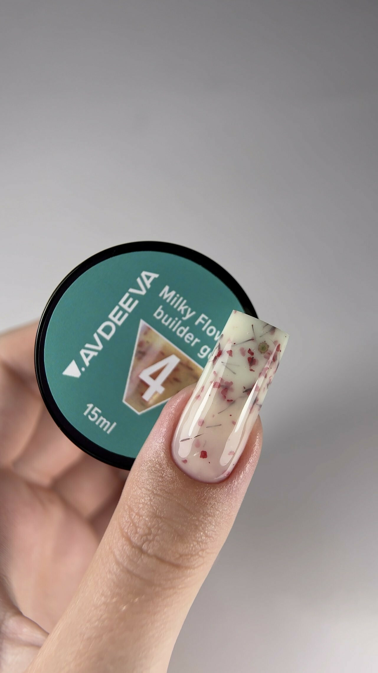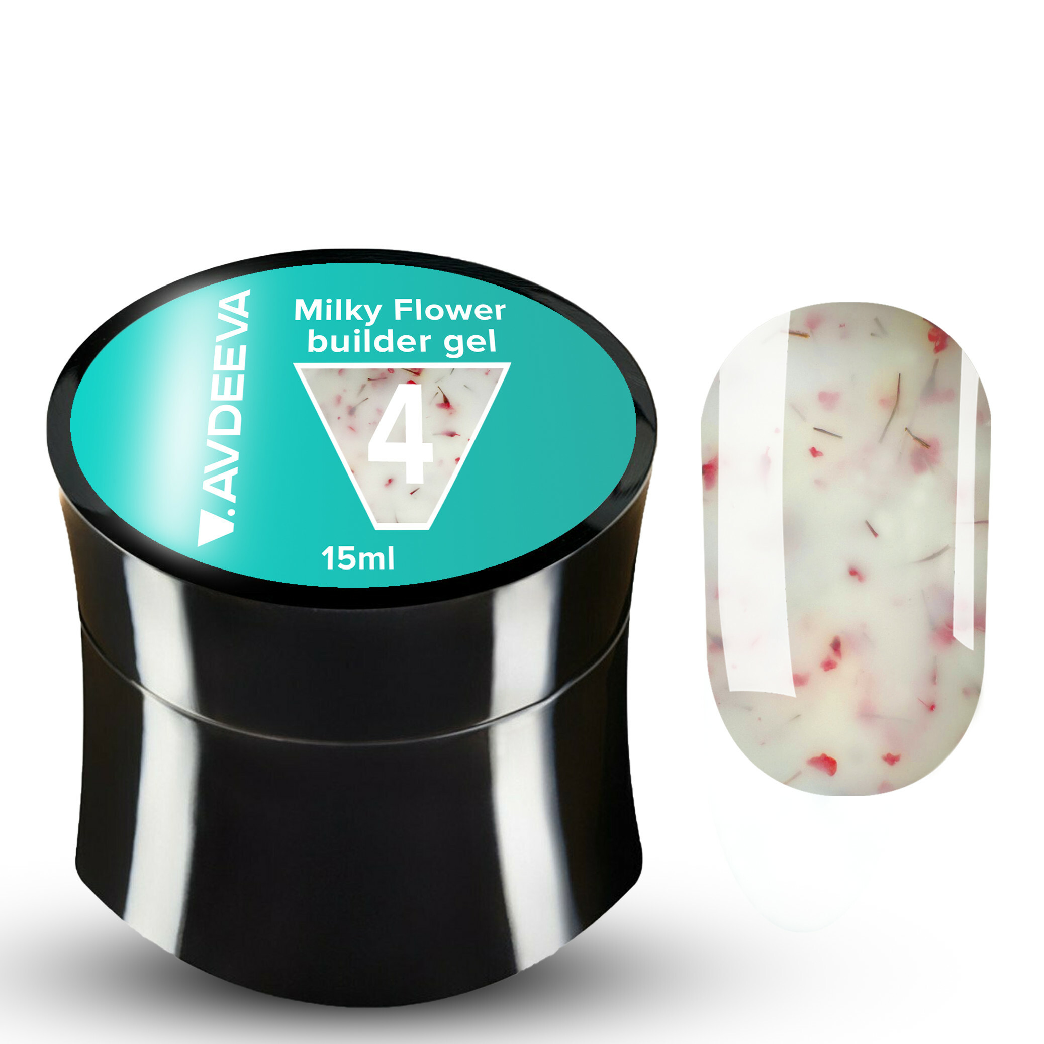 Milky Builder Gel AVDEEVA Milky Flower No.4 with Coral Dried Flowers, 15ml