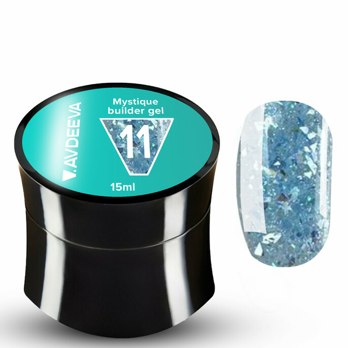 Моделирующий гель AVDEEVA Mystique builder gel №11 - витражный ледяной голубой с мерцающими хлопьями потали.