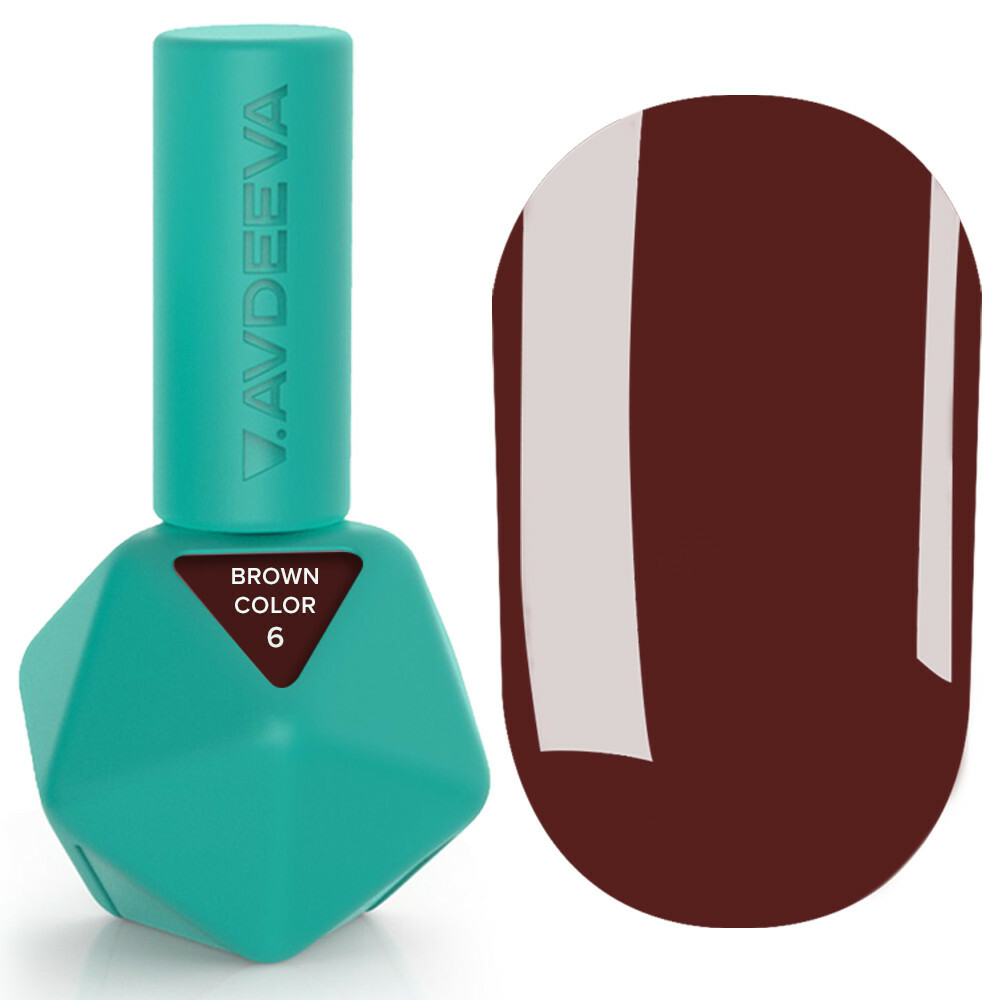 Der Gel-Lack Victoria Avdeeva BROWN COLOR Nr. 6 ist ein satter weinbrauner Farbton mit tiefem, edlem Charakter. Diese Nuance eignet sich ideal für effektvolle und stilvolle Maniküren.