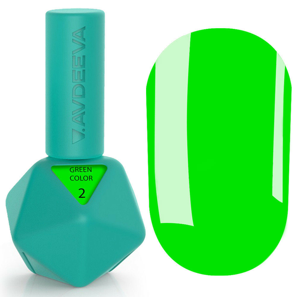 Victoria Avdeeva GREEN COLOR Nr. 2 – Neon-Gellack, leuchtend grün, 12 ml