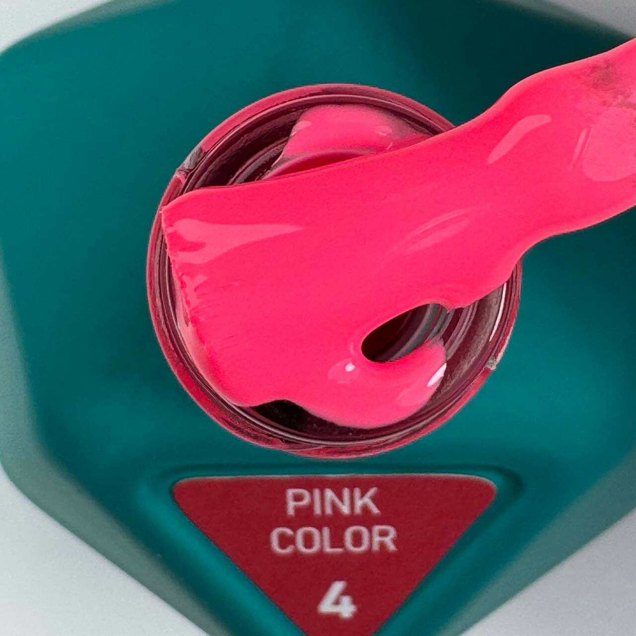 PINK COLOR 4 is a vivid pink that makes a bold statement. The highly pigmented formula offers full coverage in just 1–2 coats. Applies smoothly, without streaks or pooling. The uniquely shaped bottle fits comfortably in hand, and the precision brush ensures easy and even application. Great for both everyday and festive nail designs.