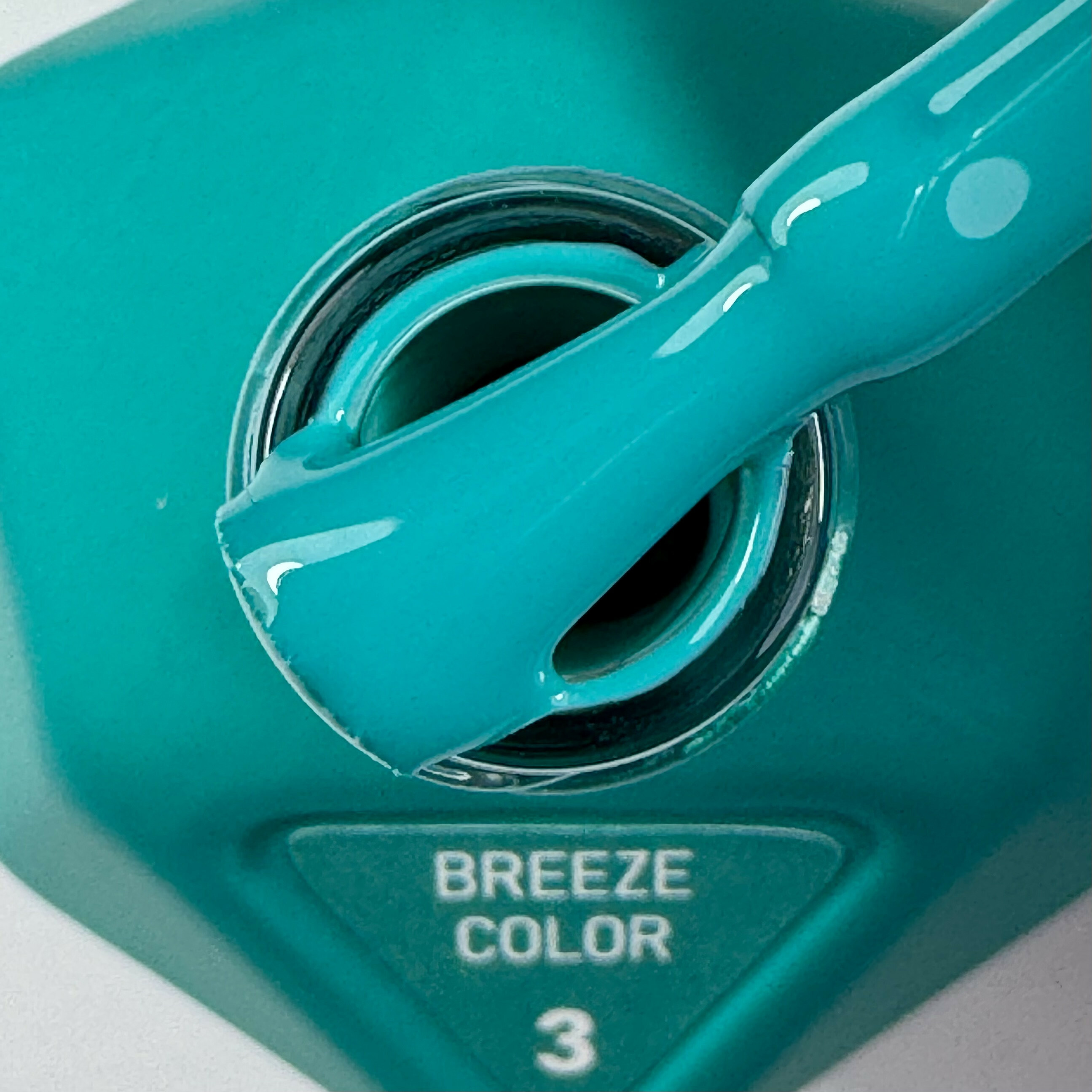 Ein edler, ruhiger Farbton in sattem Aquamarin. Breeze Color №3 bringt Tiefe und Eleganz auf die Nägel — perfekt für stilvolle und zeitlose Looks.