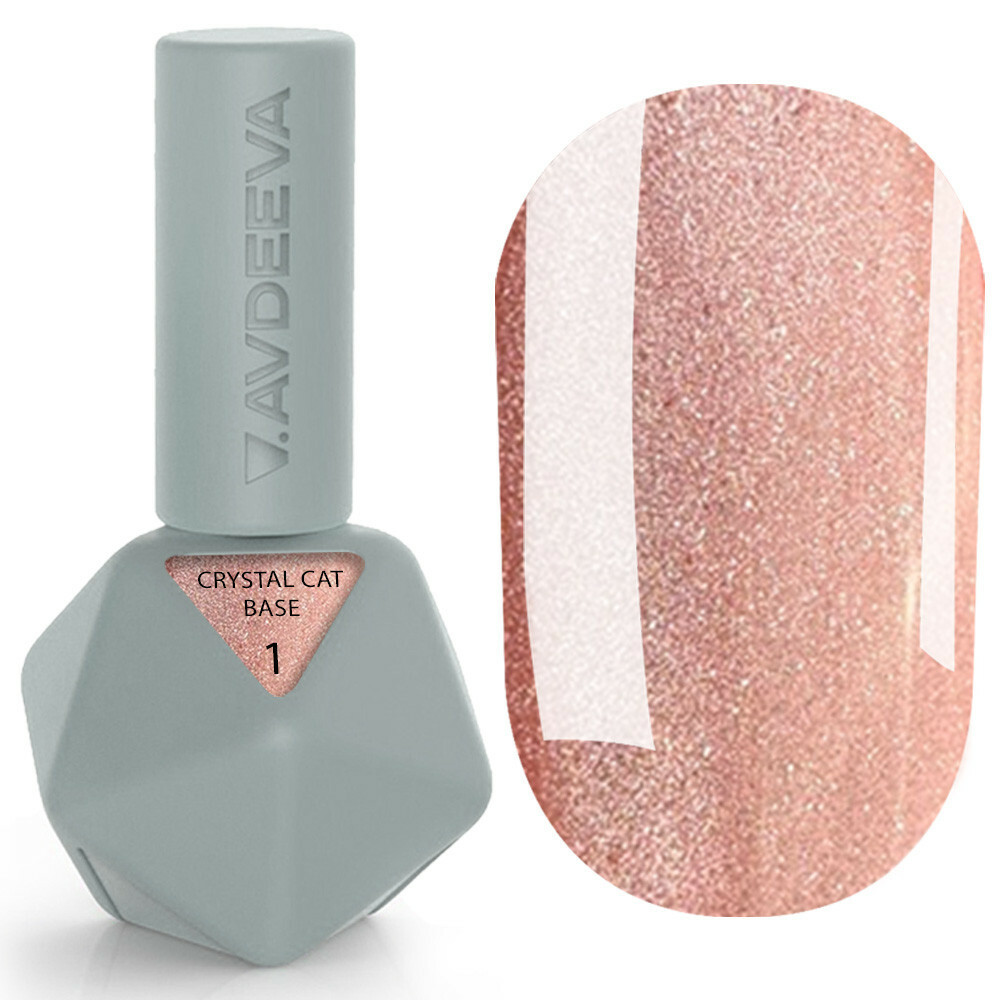 Victoria Avdeeva CRYSTAL CAT BASE 1 – eine Camouflage-Gel-Lack-Base mit „Katzenaugen“-Effekt in einem eleganten Roségoldton. Sie ist selbstnivellierend, stärkt die Nägel und sorgt für eine Haltbarkeit von bis zu 4 Wochen.