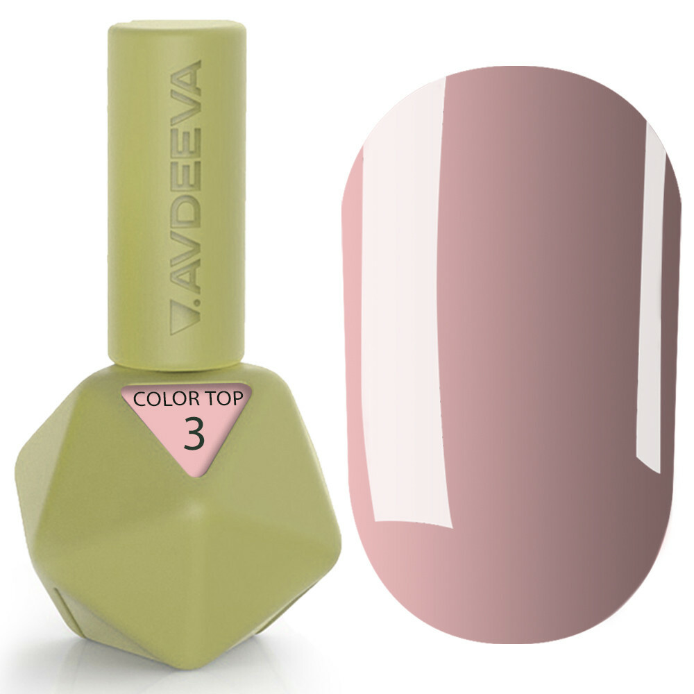 Farbiger Top Coat Victoria Avdeeva COLOR TOP 3 – Puderrosa-Ton Eleganter Top Coat in zartem Puderrosa mit glänzendem Finish. Ideal für Nude-Maniküre, French-Looks und stilvolle Designs. Ohne Schwitzschicht, Haltbarkeit bis zu 4 Wochen. 📌 Inhalt: 12 ml