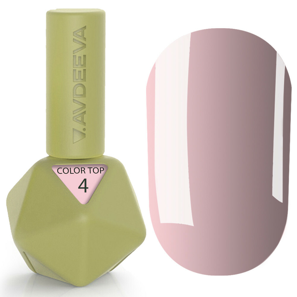 Farbiger Top Coat Victoria Avdeeva COLOR TOP 4 – Zartrosa-Ton Eleganter Top Coat in zartem Rosaton mit glänzendem Finish. Ideal für Nude-Maniküre, French-Looks und minimalistische Designs. Ohne Schwitzschicht, Haltbarkeit bis zu 4 Wochen. Inhalt: 12 ml