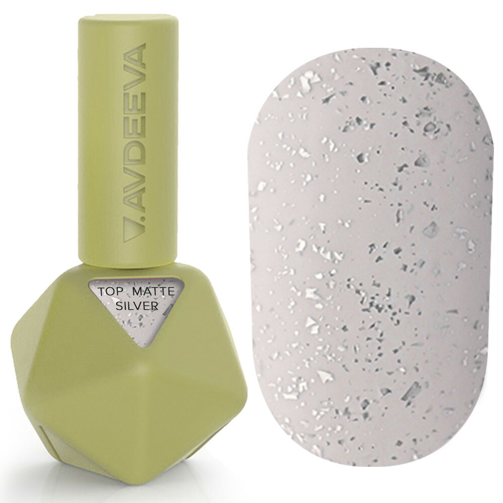 V.AVDEEVA TOP Matte Silver – Matter Top Coat ohne Schwitzschicht mit silbernen Potal-Partikeln, 12 ml