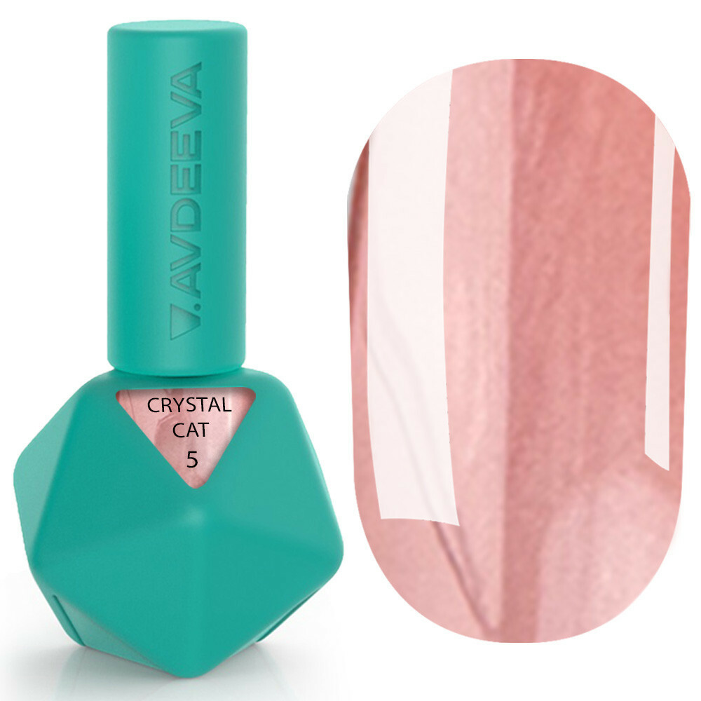 Gel-Lack Victoria Avdeeva CRYSTAL CAT 5 – kristallklarer Cat-Eye-Effekt in einem puderrosa Farbton mit metallischem Schimmer, 12 ml