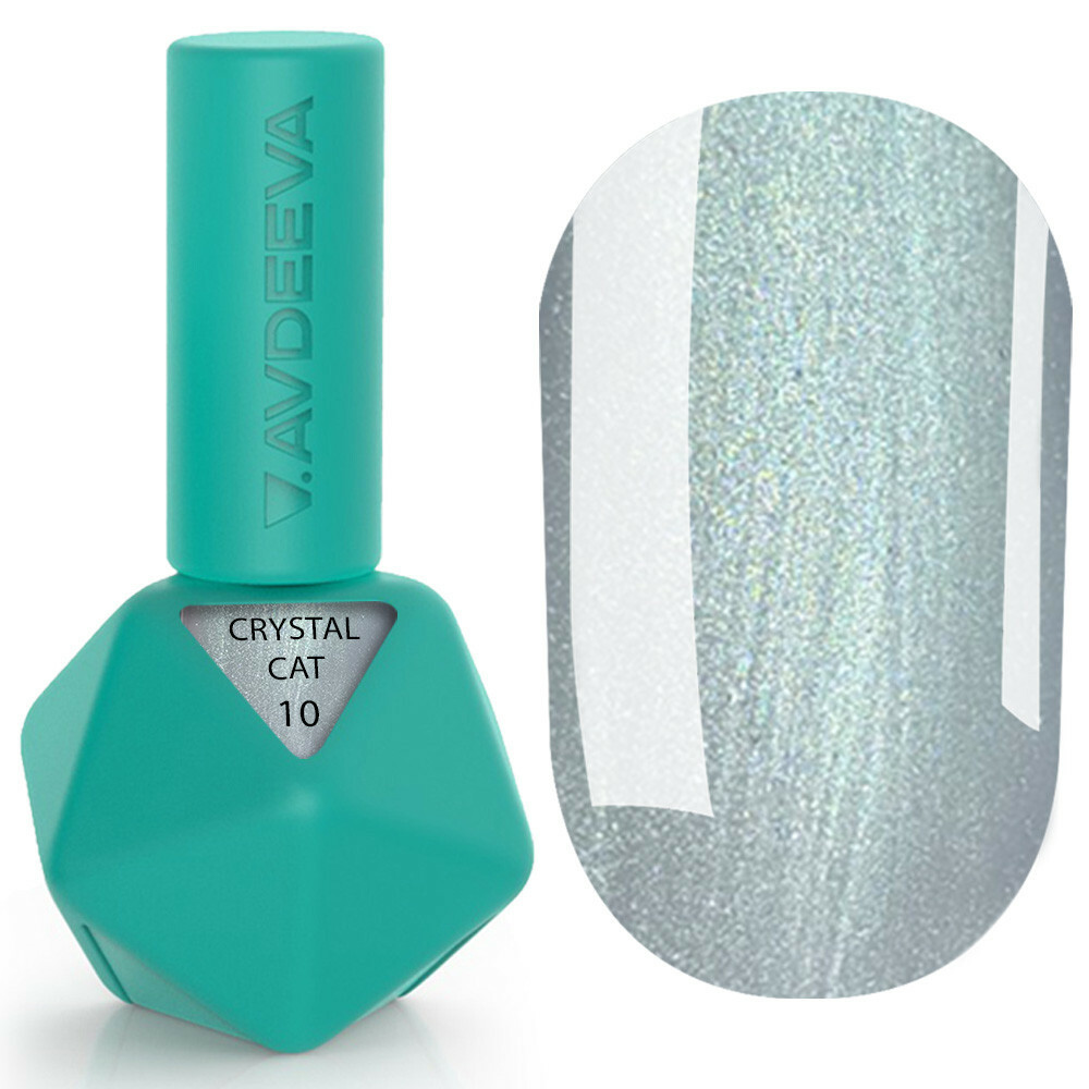 CRYSTAL CAT 10 ist ein kühler Gel-Lack in einem hellen, fast transparenten Silberton mit metallischem Perlmutt. Der „Cat-Eye“-Effekt erzeugt einen sanften Schimmer – wie von Reif überzogene Kristalle. Ideal sowohl als eigenständige Farbe als auch als effektvolle Basis für Nail-Designs.